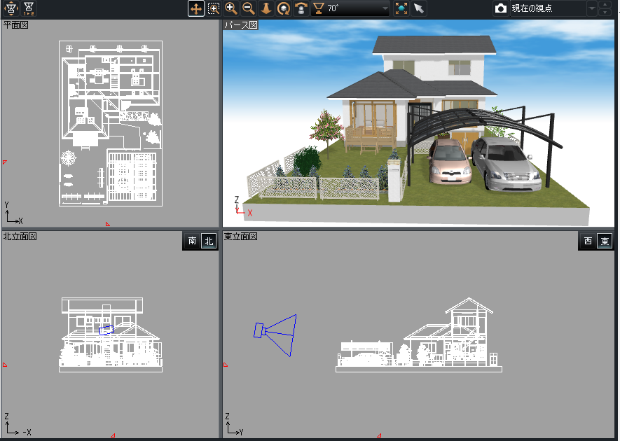 平面図から右上のような透視図が作製できる。平面図を提供していただければ、簡単に作成できます。 |